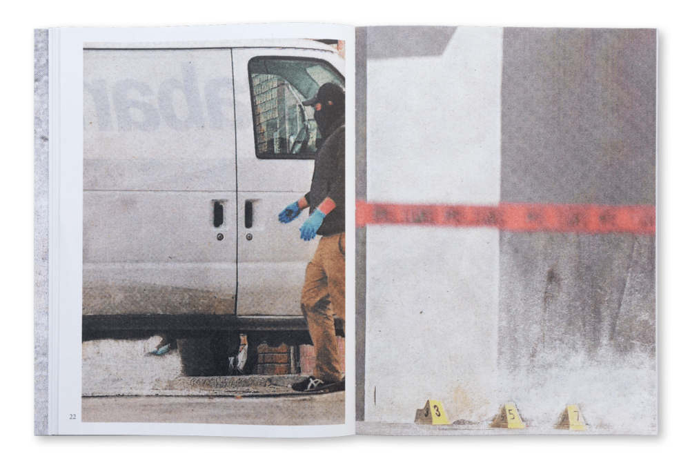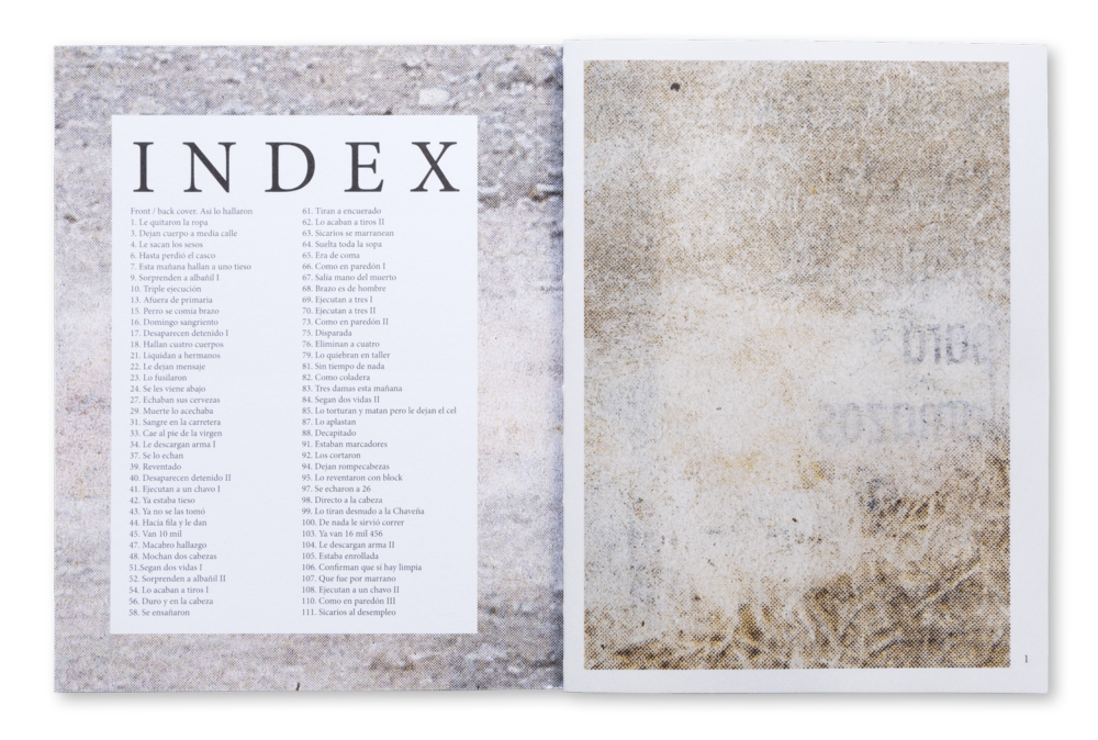 During a period of six years Alejandro Morales collected more than 500 photographs depicting bodies published his local newspaper P.M. in Ciudad Juárez, Mexico. The time of extreme violence made Ciudad Juárez among the most violent cities in the world, marked by the large number of intentional homicides committed in its streets. The limits of what the press could publish were blurred as it was so common to find oneself in the middle of a shootout or come across an abandoned corpse. Morales removed all the corpses that he found in the photographs in the P.M. Newspaper by manually erasing them with a gum eraser.